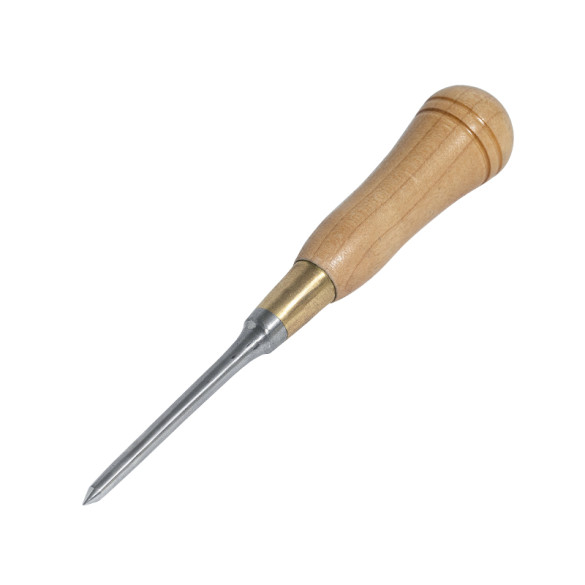 Utilisé pour le marquage, le perçage et l'élargissement de trous dans le cuir. Pointe en acier forgé, virole en laiton et manche en buis.