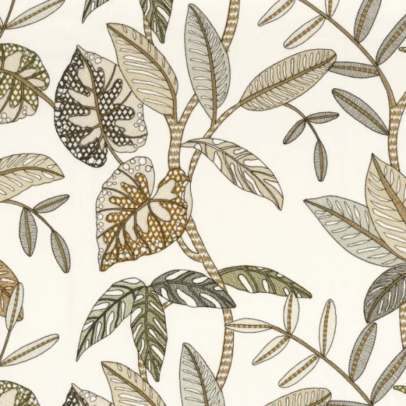 Le tissu Guarana est une création textile spectaculaire qui célèbre la richesse de la flore amazonienne. Il se distingue par ses motifs de feuilles de guarana brodés avec une précision remarquable sur un support naturel. Ce tissu joue sur des contrastes de textures et de couleurs pour infuser une énergie végétale et une élégance exotique à votre décoration.