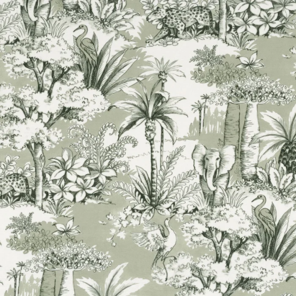 Toile de Jouy Passaro vert de gris Camengo