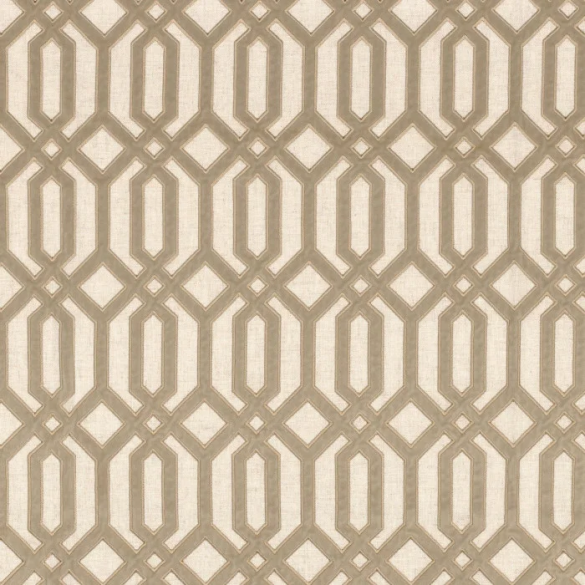 Le tissu Vibrations est une œuvre textile d'une grande technicité qui joue sur les effets de lumière et de matière. Il se distingue par son motif intemporel, découpé au laser avec une précision extrême, puis appliqué sur un support noble. L'utilisation d'un fil de viscose lui confère un éclat satiné qui contraste magnifiquement avec la matité du fond, créant une impression de vibration visuelle.