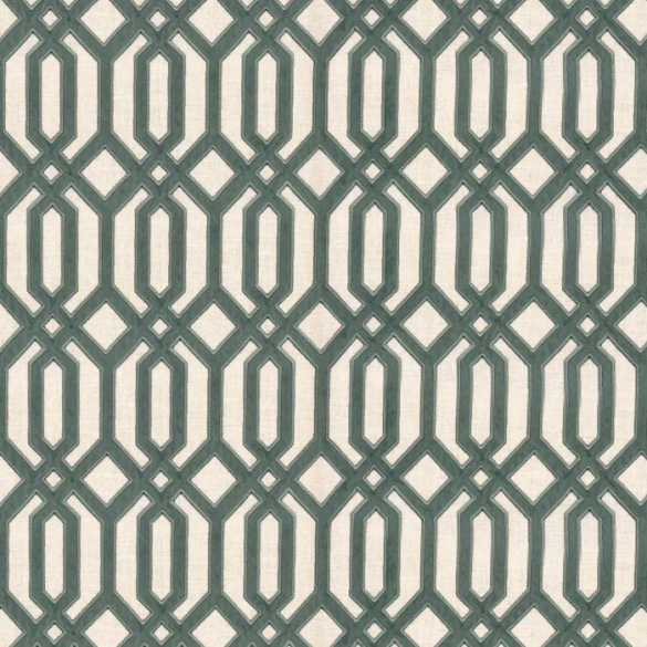 Le tissu Vibrations est une œuvre textile d'une grande technicité qui joue sur les effets de lumière et de matière. Il se distingue par son motif intemporel, découpé au laser avec une précision extrême, puis appliqué sur un support noble. L'utilisation d'un fil de viscose lui confère un éclat satiné qui contraste magnifiquement avec la matité du fond, créant une impression de vibration visuelle.