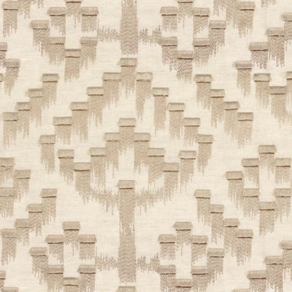 Le tissu Akame est une création délicate qui célèbre la beauté de la nature sauvage. Il se distingue par son motif de feuillage brodé, dont les lignes fluides et épurées semblent dessinées à la main. Ce travail de broderie apporte un relief subtil et une texture raffinée à l'étoffe, créant un jeu de matité et de brillance très élégant.