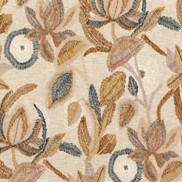 Composition : 55% coton / 30% lin / 15% viscose - broderie polyester