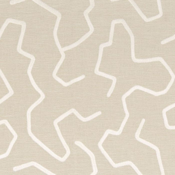 Le tissu Orma est une création moderne qui joue sur des contrastes de matières pour offrir une expérience tactile unique. Il se définit par un motif graphique brodé avec un fil chenille particulièrement volumineux et doux. Ce travail de broderie repose sur un tissu de fond épais et très texturé, dont la chaîne et la trame marquées révèlent un aspect brut et authentique.