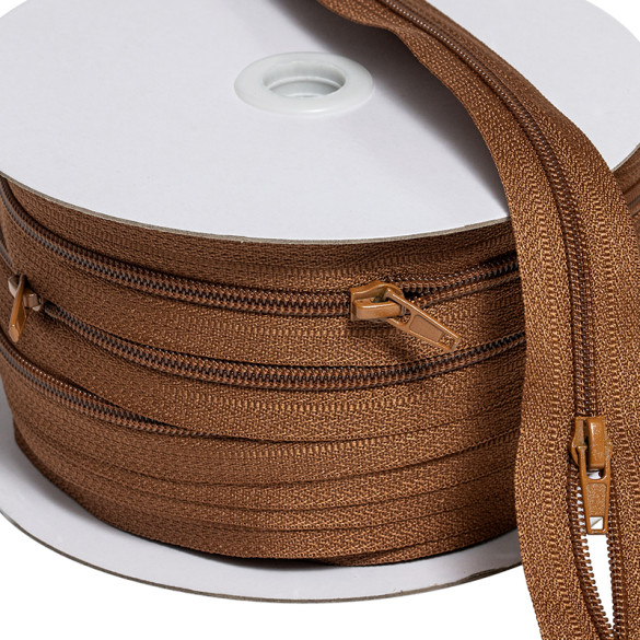Rouleau de fermeture à glissière séparable 5 mm marron cuivré