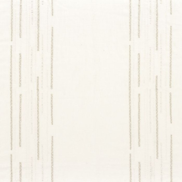 La collection Solstice Sheer transpose l'élégance graphique de la gamme sur un voilage en grande hauteur d'une légèreté exceptionnelle. Ce tissu se distingue par ses rayures brodées qui dessinent un rythme aérien et lumineux, délicatement ponctué de touches aux reflets dorés.