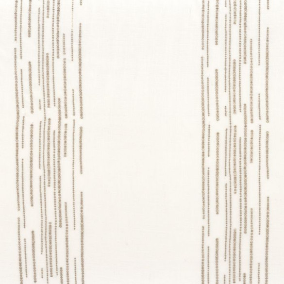 La collection Solstice Sheer transpose l'élégance graphique de la gamme sur un voilage en grande hauteur d'une légèreté exceptionnelle. Ce tissu se distingue par ses rayures brodées qui dessinent un rythme aérien et lumineux, délicatement ponctué de touches aux reflets dorés.