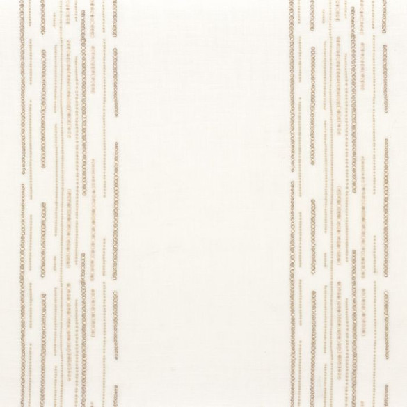 La collection Solstice Sheer transpose l'élégance graphique de la gamme sur un voilage en grande hauteur d'une légèreté exceptionnelle. Ce tissu se distingue par ses rayures brodées qui dessinent un rythme aérien et lumineux, délicatement ponctué de touches aux reflets dorés.