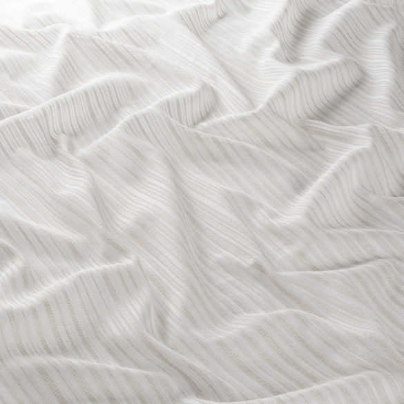 Voile tissé au dessin de fines rayures et aux petits motifs, léger et fluide, idéal pour adoucir la lumière tout en préservant l’intimité. Grande largeur 300 cm pour une pose en pleine laize et un tombé aérien. Sa main souple et son voile régulier diffusent la lumière avec douceur dans les pièces à vivre comme dans la chambre. La grande hauteur permet des confections nettes, sans raccord horizontal, pour un rendu sobre et contemporain en voilages.