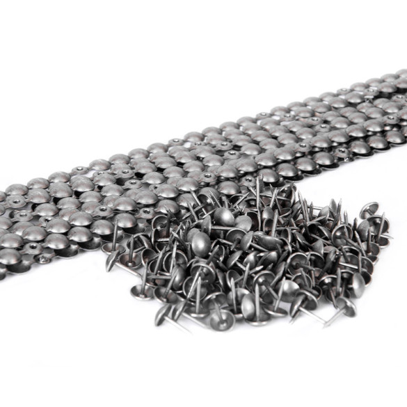 Lot de 10 bandes de clous tapissier Lentille Fer Aluminium brossé 9,5 mm + 200 clous