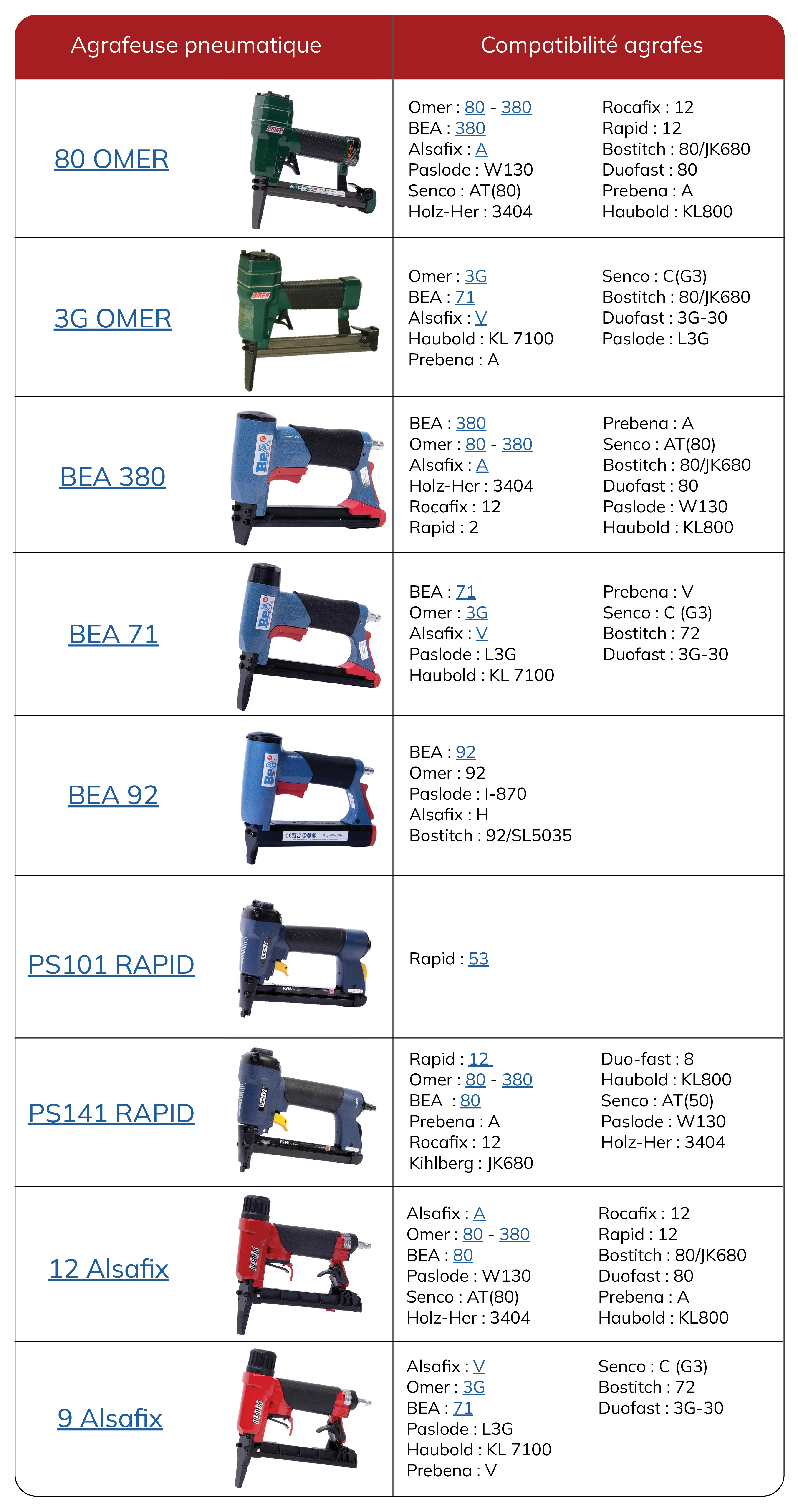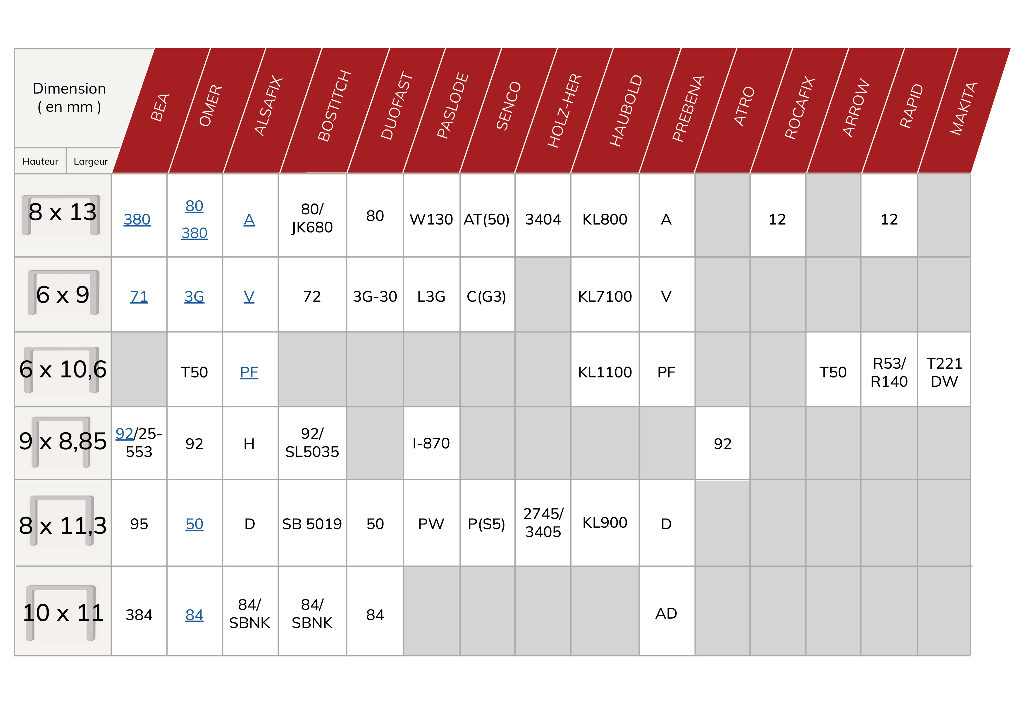 Artapisserie met à votre disposition ces tableaux de compatibilité des agrafes et agrafeuses en format pdf. Il intègre différentes marques, dimensions et produits.